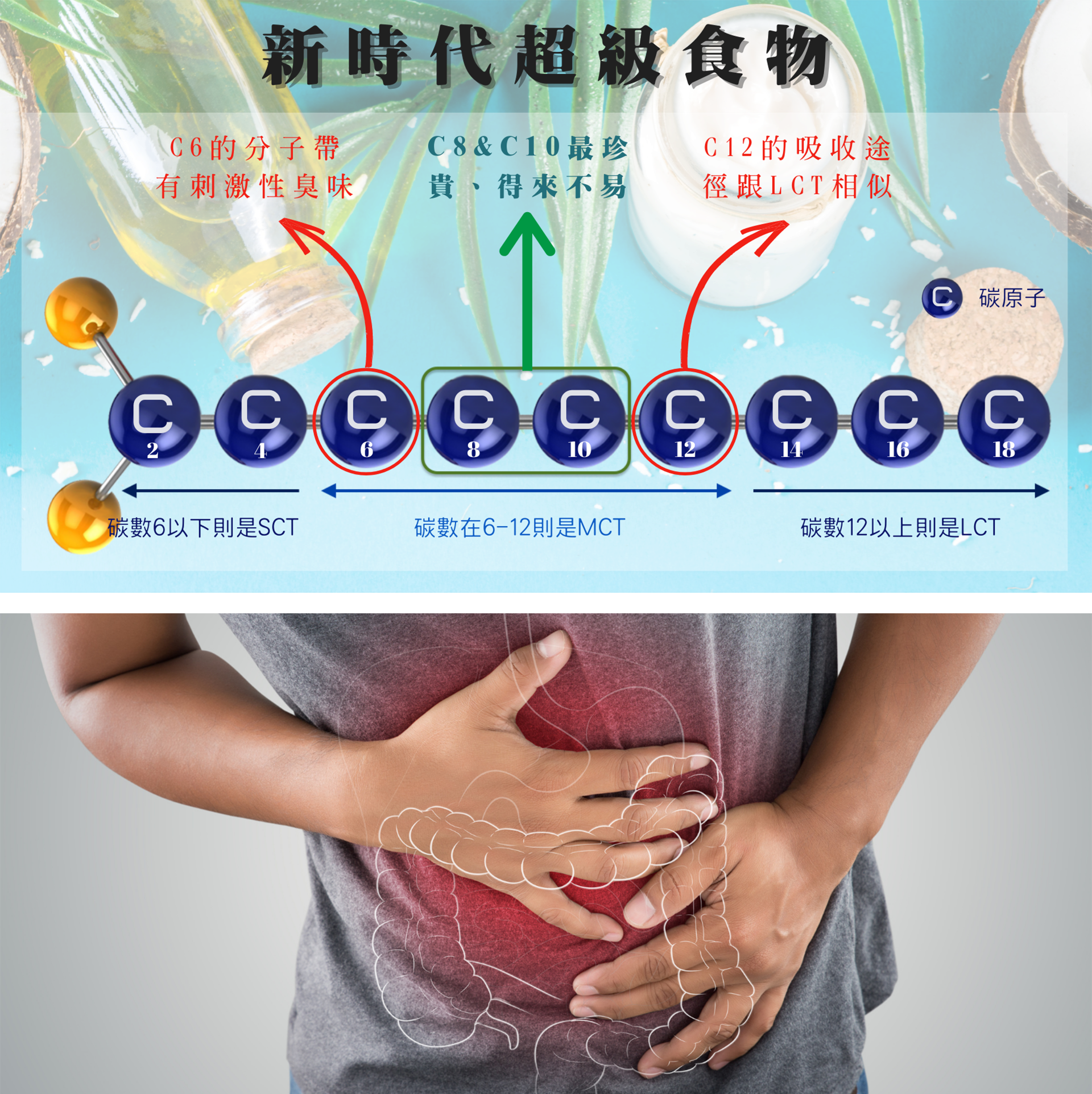 選C8與C10 (約3:1是最佳比率) 的MCT