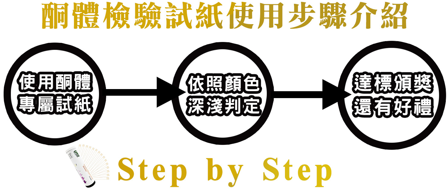 那可能會有粉絲舉手發問:要如何知道生酮飲食水準成效如何?其實想知道體內酮體含量多寡很簡單!使用專屬的MCT檢驗試紙即可在家自我檢測囉;首先將如廁後的小便收集於乾淨器皿中,再把試紙浸透下尿液後迅速取出,用肉眼觀察色彩變化,當顏色越深代表體內的酮體代謝物良好;小編歡迎您依照個人體質狀況可線上來詢問MCT先生,提醒30天能於每天補充MCT達成深紫色的酮症狀態不是夢,記得將其拍照回傳,還能獲得生酮認定獎狀蓋章,以及領取免費好禮,先贏先贏,成為人生贏家別錯過!